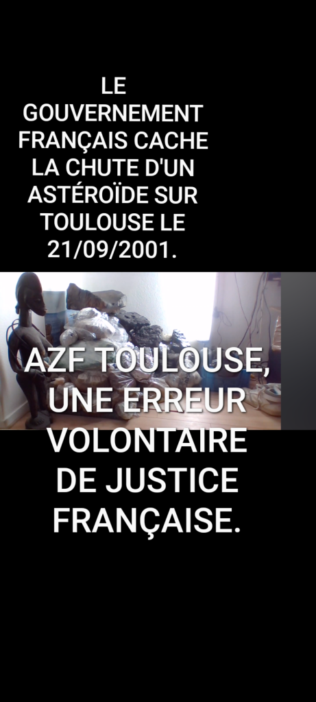 Se cache 3,4 dans l’échelle de Richter dans l’affaire AZF Toulouse ainsi que la chute d’un astéroïde de 25 tonnes dont j’aimerais présenter cette indécence.